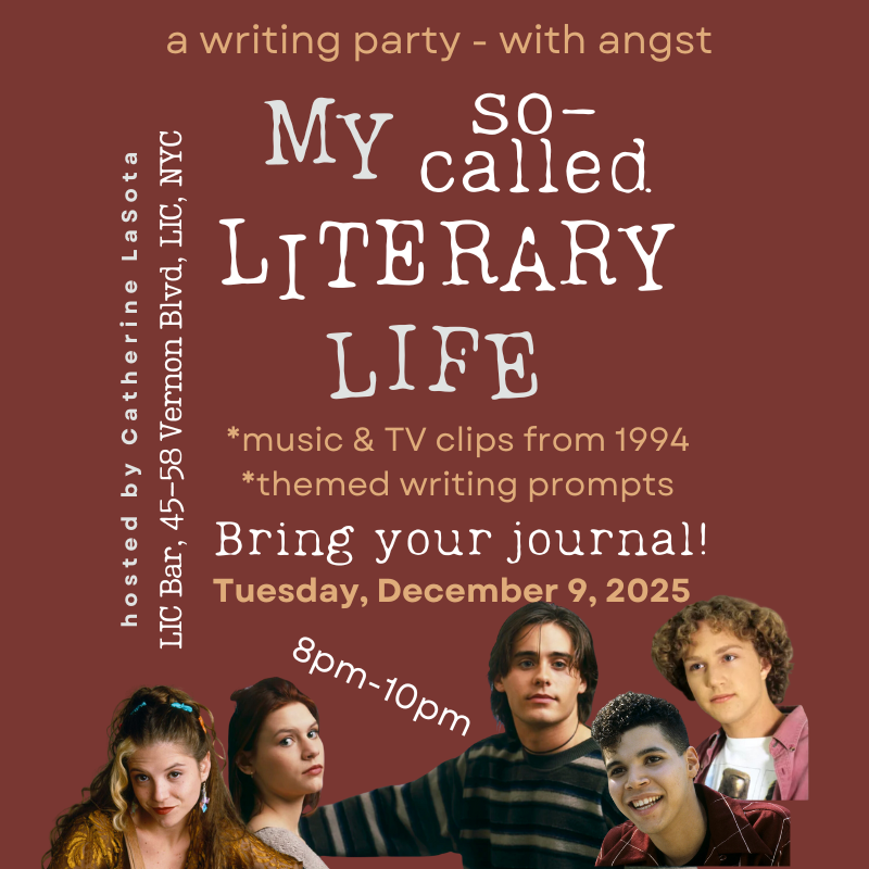 Bring your journal! Together, we will listen to some music from the 90s and watch short clips from beloved 1994 television show My So-Called Life. Catherine will offer themed writing prompts following each TV clip, for group writing time. This is a chance to gather and get some writing done. No sharing of writing required!